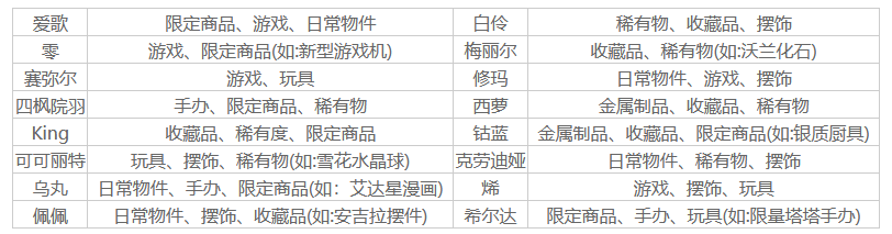 以上就是小编整理的关于《幻塔》角色礼物喜好汇总的全部内容,想获得更多相关游戏攻略可以关注手游网。