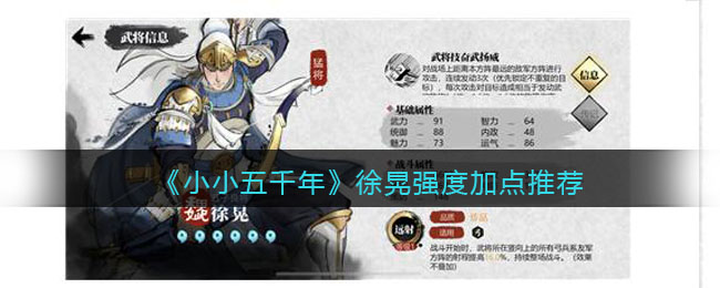 《小小五千年》是一款三国背景的策略战斗游戏,游戏中有很多不一样的三国武将,其中徐晃怎么样,技能强度、加点、部队配置如何呢?很多小伙伴可能还不清楚,下面手游小编就给大家带来了《小小五千年》徐晃强度加点推荐分享,想要了解的一起看看吧!