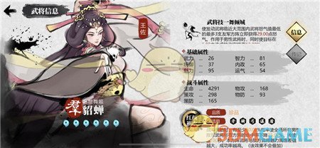 辅助貂蝉是人权卡,你开局号只要有貂蝉,别的都不怕。目前战法5级,6级升不到。开局30秒减45%命中,无敌。