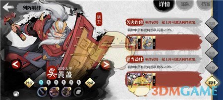 程普与黄盖有羁绊,加攻,另外抽到周瑜的话,周瑜黄盖羁绊加闪避。同时程普自身buff开局给一竖排减伤,但是时间有限,开局二十秒。所以所有的盾兵一定要站在第一排,尽早接战,让这20秒收益最大化