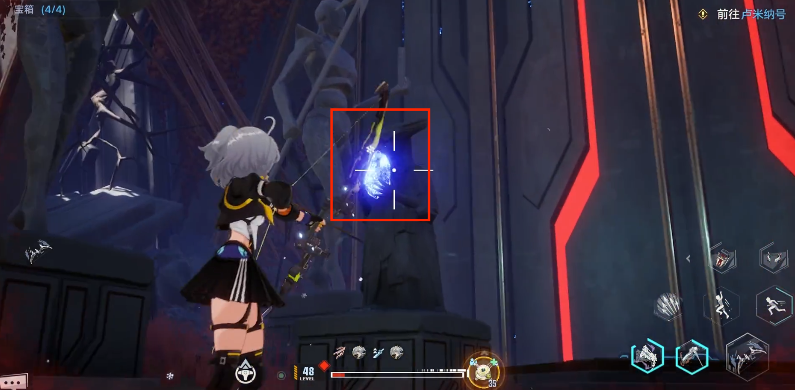 第四个宝箱需要先射击左边的柱子,然后射击左前方,平台左边走就能看到。