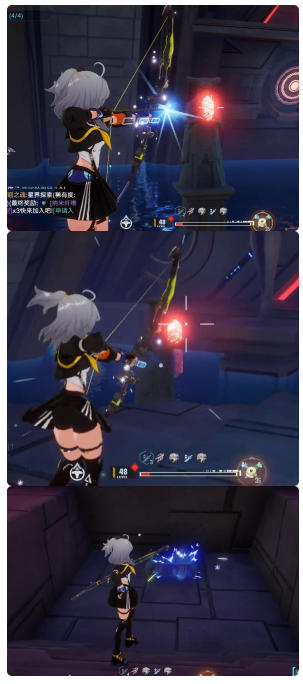 来到门口,使用远程武器攻击蓝色水晶,前方的升降台就会亮起。
