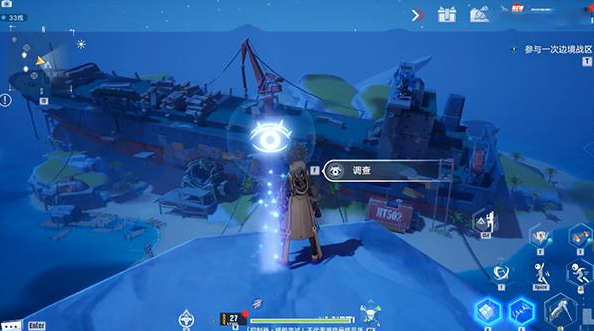 传送到南部山区折跃门,往伸出去的岩石处走,在岩石上,然后就能看到调查点。