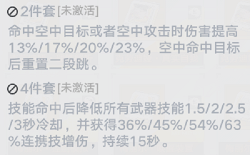 4、搭配思路:利用红莲四件套效果缩减武器的技能CD,在红莲四件套都满星的情况下,红莲刃的CD缩减到9s,冰弓的CD会缩减到6s,考虑到武器切换时的连携技以及释放技能所需要的释放时间,基本上是感受不到两把武器会有CD存在的,另外红莲刃和冰弓都提供了不小的辅助能力,在无CD的同时伤害方面也是很高的。