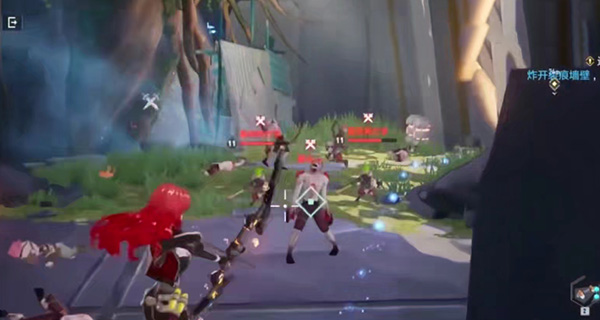 3、通过大门来到第二个房间,会有很多异化兽,将其清理,然后在右侧使用旁边的炸药桶将大门打开;