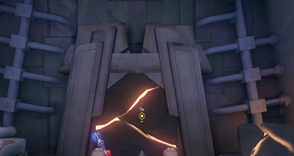 2、在大门的右侧位置有一个发着黄色光芒的时候后面是第一个宝箱,使用源器多重飞弹,攻击,大门和宝箱都会打开;