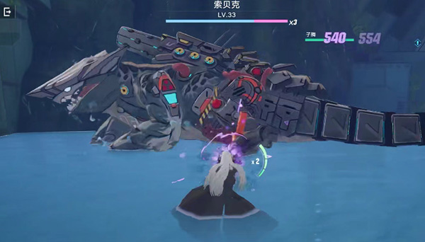 1、首先选择异界C03简单模式,一进入遗迹面对的就是关卡boss索贝克,它的位置是在水中,这样对于我们是很不利的,行动不方便,尽量要跳起来攻击它,玩家们可以找到旁边的高地,使用弓箭武器来攻击比较好;