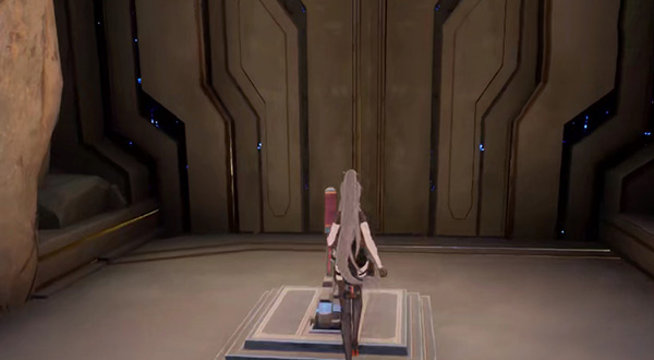 4、然后往第三个房间走,在入口的右侧位置可以看到第二个宝箱,使用原能手炮将红线挡住进去拿第二个宝箱;