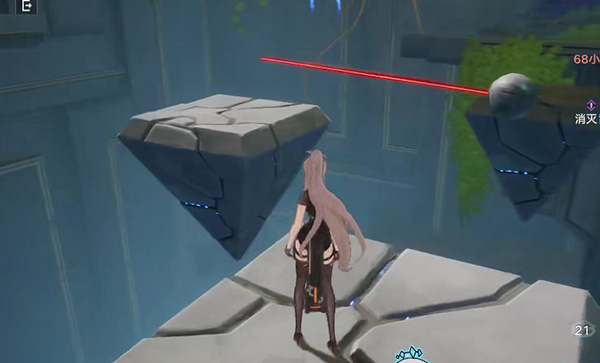 6、通过机关之后来到第一个关卡,观察红色射线,从空隙中过去即可;