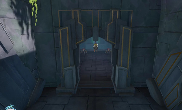 2、到左边平台的时候跳上去,开启右边大门的机关;