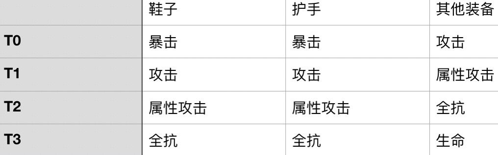 2.输出和治疗都会吃暴击加成,所以我们要给暴击一个位置,然后是攻击,之前说了治疗和仇恨都和攻击挂钩,接着根据自己武器的属性选择属性攻击。