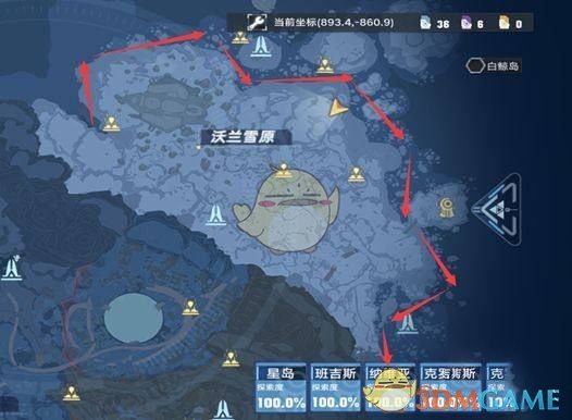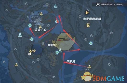 1、雀头薯:雀头薯生长的位置比较的分散,可以按照图中的路线寻找。