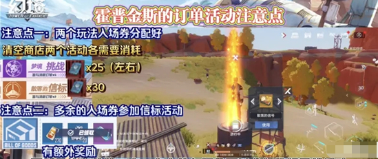 需要注意的第一点就是:两个玩法入场卷需要分配好。因为本次活动入场卷是有限的,且两个玩法获得的兑换卷都是不一样的,因此要搬空商店就需要两个玩法都参加。根据up计算搬空商店:信标玩法需要消耗:30张入场卷、梦境玩法需要消耗:25张入场卷。因此我们要给梦境玩法留够25张入场卷,以免最后也无法搬空商店。