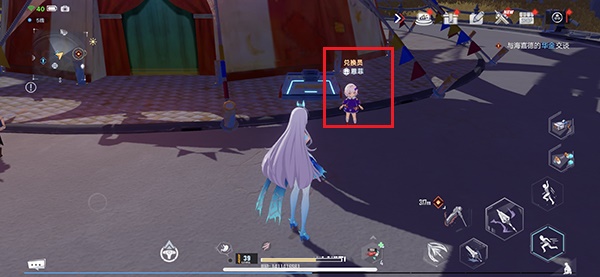 3、然后往第二个帐篷位置走,在帐篷的右边一点就能够看到兑换员恩菲;