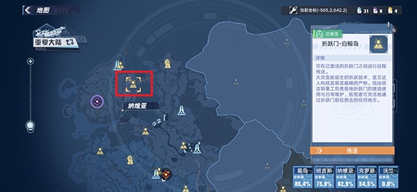 1、首先恩菲在白鲸岛上面,在地图中点击【折跃门-白鲸岛】直接传送过去;