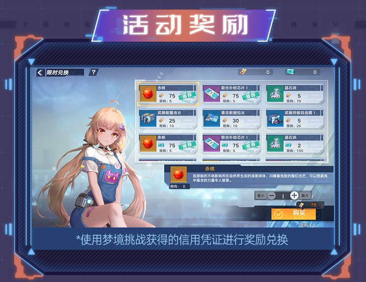 4.使用「信用凭证」可在限时活动商店中兑换「赤核」、「联合补给芯片Ⅰ」、「能量晶尘」、「晶簇」等等道具。