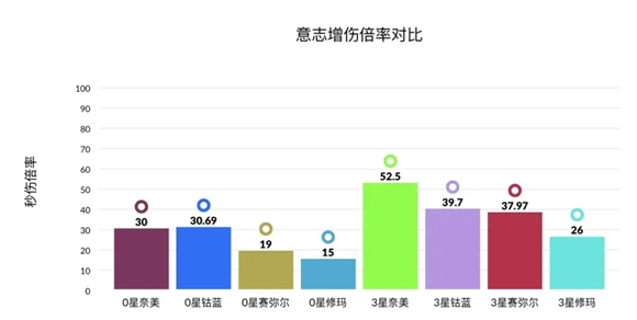 其中赛弥尔的倍率为奈美西斯在场上输出时且算上两根电极的倍率,再乘以30%左右的启明星驻场时间,得平均秒伤倍率。所以赛弥尔意志的增伤是根据:启明星驻场输出时间决定的,实战中超过30%驻场赛的增伤倍率就会更高。又因为赛弥尔在电极加持下基本出场就能吃满,所以赛弥尔优先级肯定高于红莲,红莲就用不参与本次测试。