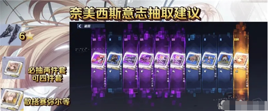 3、打算抽6星启明星的玩家,最少也要抽一套奈美西斯两件套,条件允许也可以抽齐一套。因为就算共用CD其增伤的倍率仍然是有提升的。