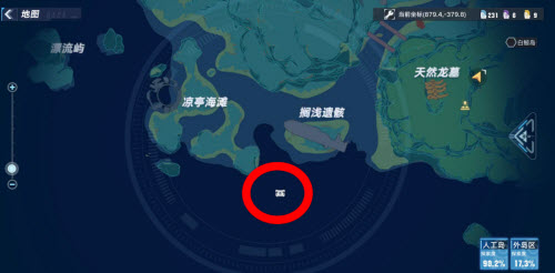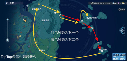 首先我们会被传送到双子岛北,然后我们找到东南小岛上的传送装置,如下图。