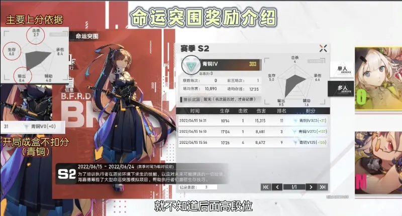 而上分机制目前来看主要是生存、击杀、输出、这三个点为依据,目前青铜段位就算开局就死,积分也不会扣,就不知道后面高段位是否会添加有扣分机制了。