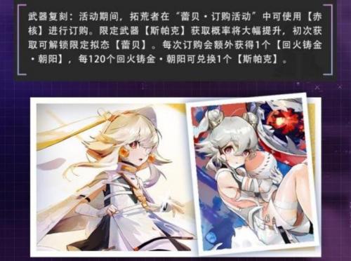 2、活动卡进玩家在蕾贝订购活动使用赤核进行订购;