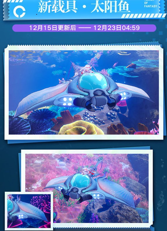 首抽仅需120墨晶或40钛晶,花费随抽取次数依次增加,上限15次即可拿满全部奖励。参与抽取除可获得载具太阳鱼以外,还有机率获得时装「浮光絮语」,「铭刻回忆」礼盒(头像“铭刻回忆”、头像框“蛋糕与派对”、聊天气泡“惊喜与庆典”),堡垒微反应炉碎片,堡垒外骨骼碎片,以及赤核、时空晶碎(橙)、数据中继器等丰富道具资源。
