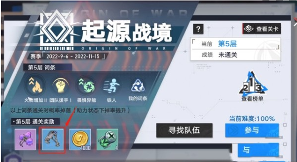 1、玩家需要完成”起源战境“任务获得材料。