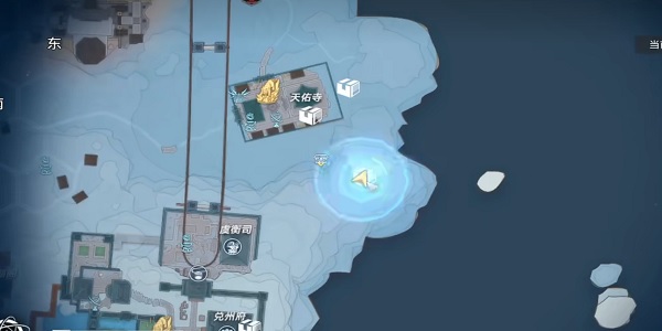 3、接着飞往上方(北方向)的天佑寺,直接前往天佑寺顶层中间。