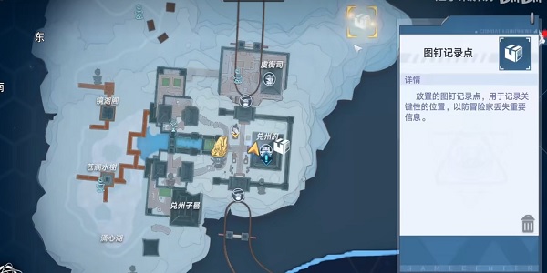 2、从兑州府出来, 飞往地图右上角(东北方向)的图钉记录点。