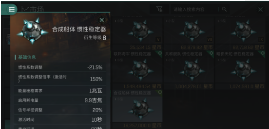 稳惯稳的是舰船惯性系数,其属性跟舰船质量挂钩,倍率越低,舰船的加速度和转向速度就越快,最直接的数值会反映在“跃迁准备时间”上。
