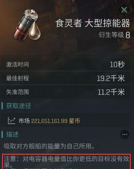 在这里,先为大家介绍一下EVE中存在的两款电子战装备,它们分别是“吸电”与“毁电”。这两款电子战装备均作用于敌方舰船的电容器,吸电较为保守,属于偏向防御的电子战;毁电则特化了进攻,甚至需要牺牲自己的电容才能启用。