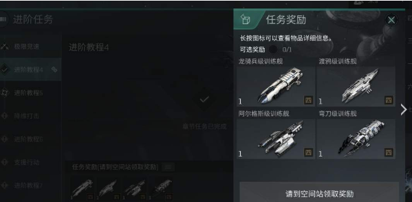 1、在完成进阶任务4以后,玩家可以从「龙骑兵级」「渡鸦级」「阿尔格斯级」以及「弯刀级」四艘训练舰中任选其一获得