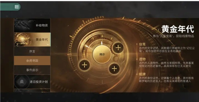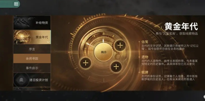 首先,进入活动界面,映入眼帘的是黄金年代的背景介绍,在主界面选择余烬寻踪或者开始调查,就可以进入线索的调查界面。