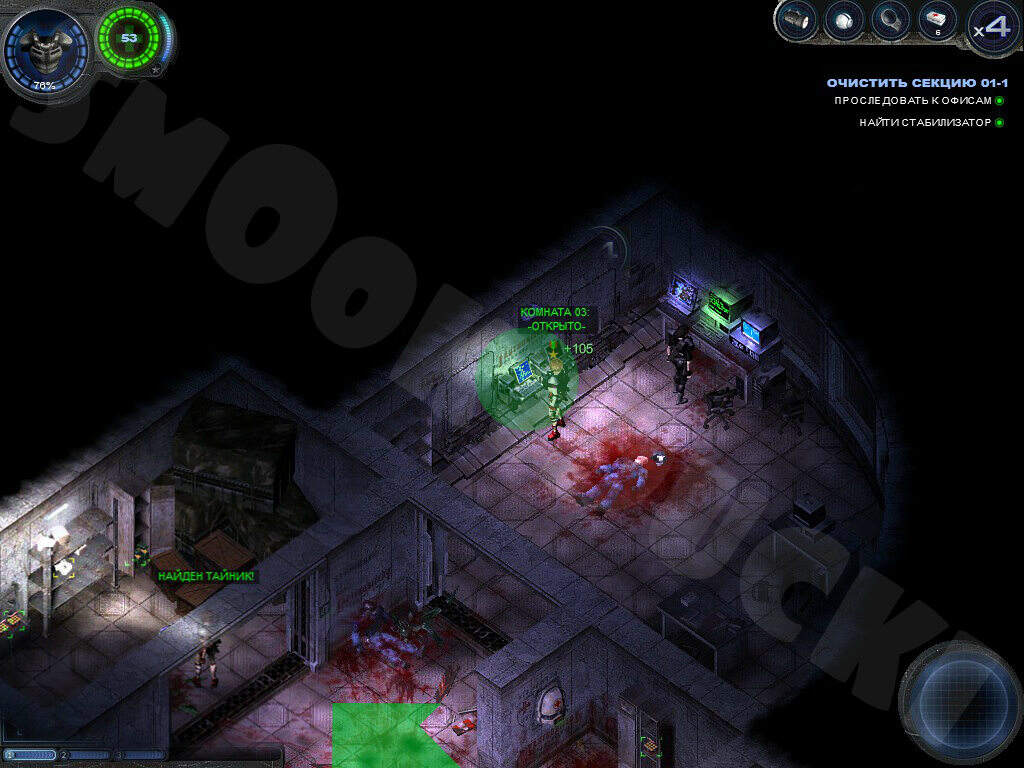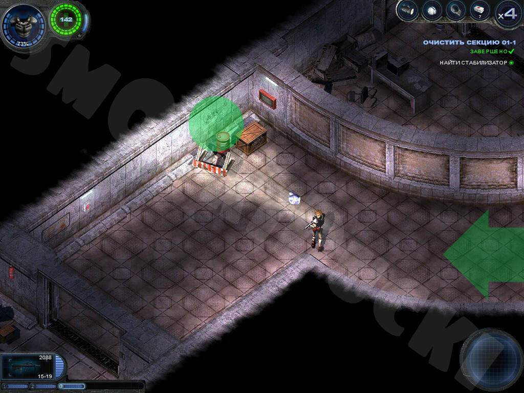 我们使用办公室里的秘密钥匙(在防御战期间,异形首领就是从那里攻击我们的),在房间尽头找到了稳定器。