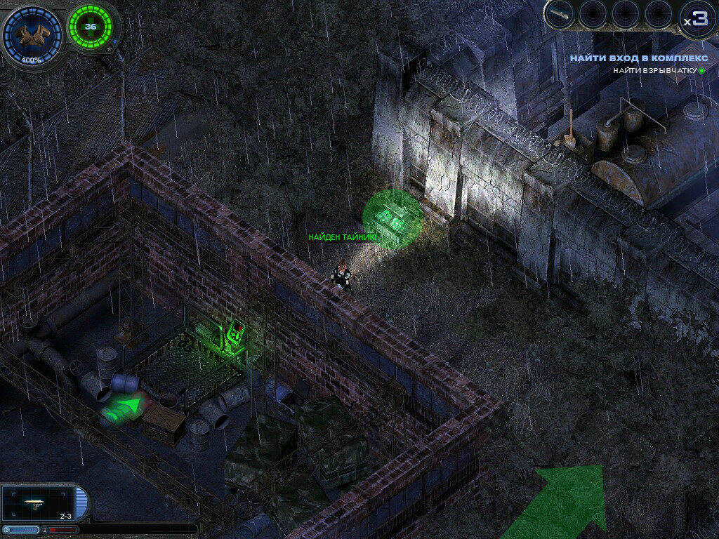 第三处隐藏地点在地图的右侧,从此处打烂箱子可以看到一处下水道的通道,从此处可以不使用炸药直接进入到基地内部。是通往建筑群的秘密通道(里面有很多有用的东西,比如一把霰弹枪)。