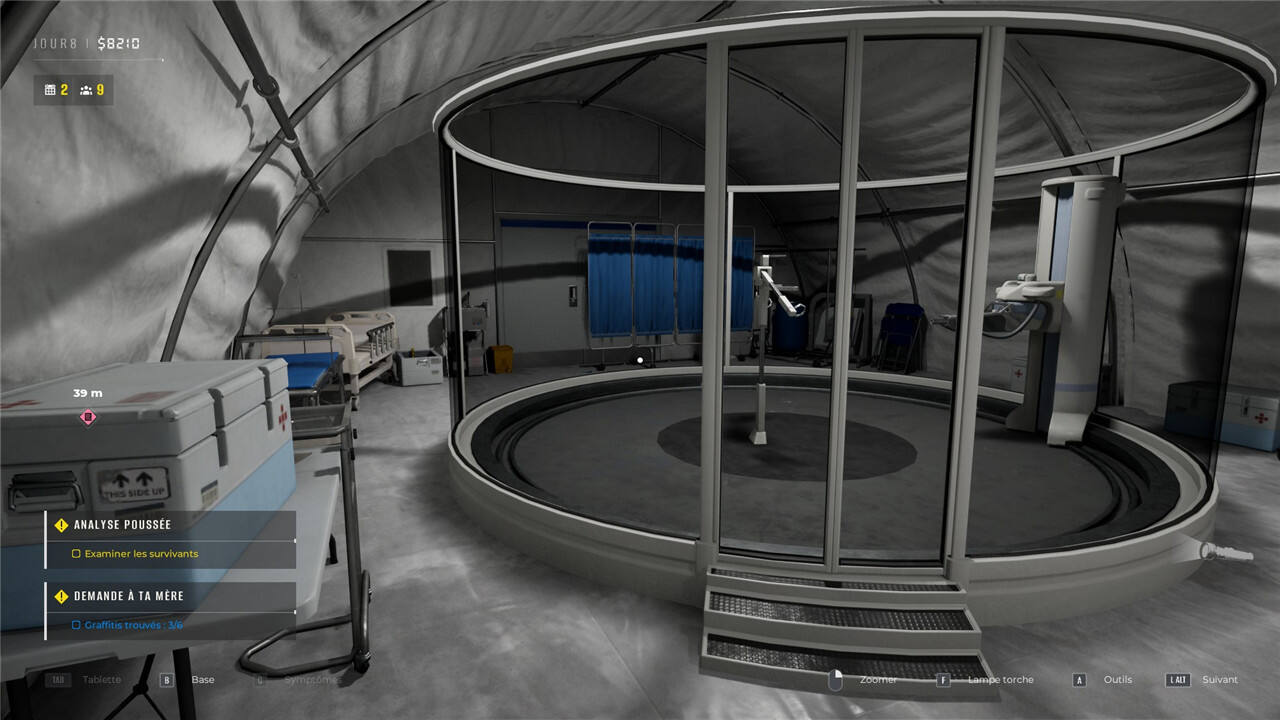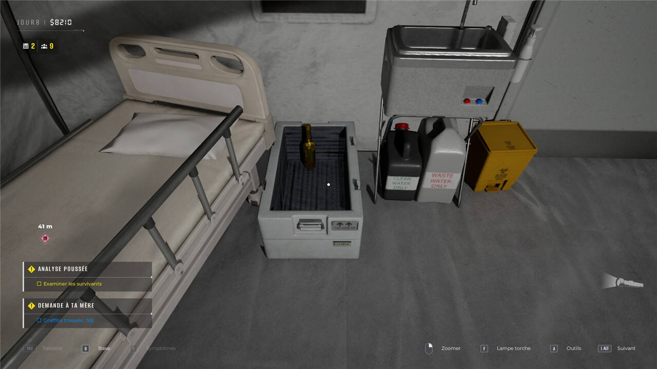 6.第八天,实验室解锁后,前往分析室,穿过采样室向左走。那里有一个箱子,里面装着一个金色的瓶子。