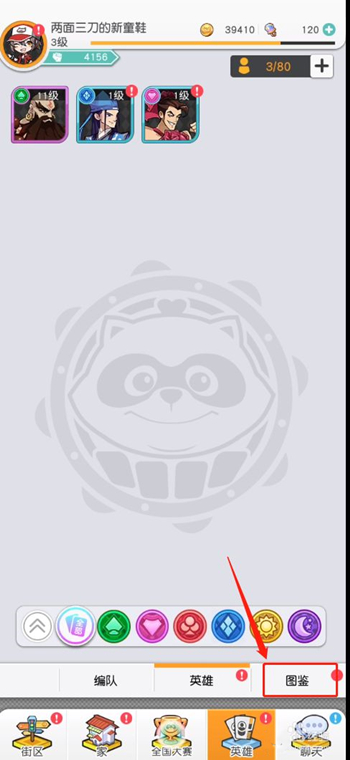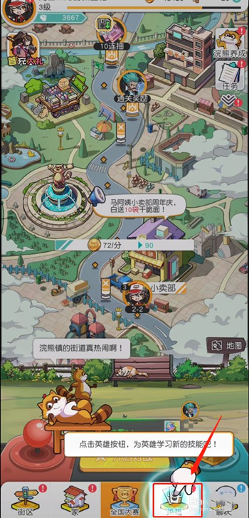 1、进入小浣熊百将传游戏页面,点击右下角的英雄。