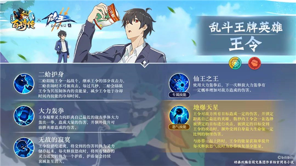 在游戏中,王令是乱斗王牌阵营英雄,作为力量型的前排战士,他单体爆发十分强悍。当他战斗时,将锁定距离自己最近的英雄,数秒内对被锁定的目标进行持续性攻击,被锁定的目标受到王令的攻击时,受到额外的物理伤害。