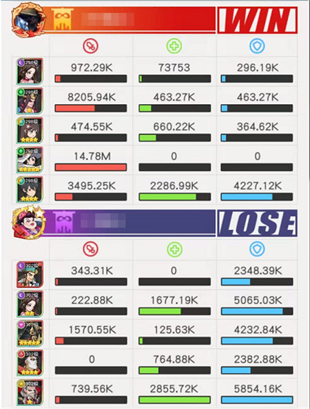 为了验证笔者的结论,再次对第一次无法打过的较高强度的好友进行了测试,实战数据如下。