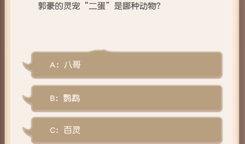 2.问题:郭豪的灵宠“二蛋”是哪种动物?