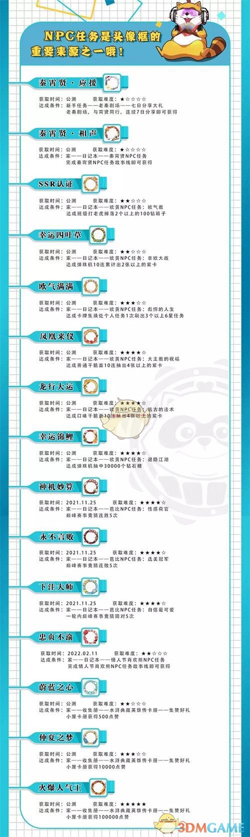 3、综上所述,大家可以直接参照小编提供的头像框获取攻略来收集对应的头像框,赶紧肝起来吧。