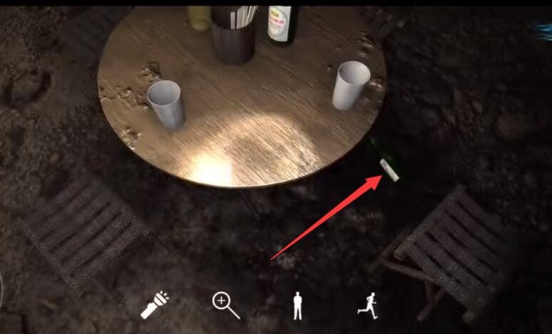 位置:地上有个空酒瓶子,瓶子里有一张纸,观察里面就可以得到新线索。