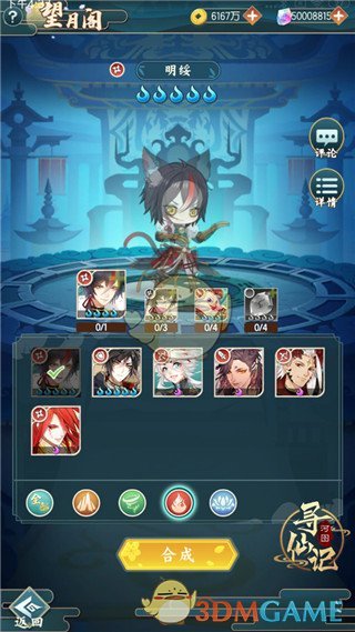 1、点开游戏主城界面,进入望月阁。当看到带有小红点的将灵选项就表示材料足够可以进行合成,六星将灵统一用紫色一星表示
