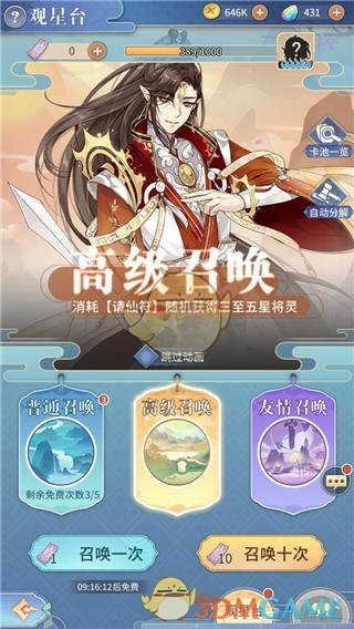 将灵抽取一般有三种:普通召唤,高级召唤,友情召唤