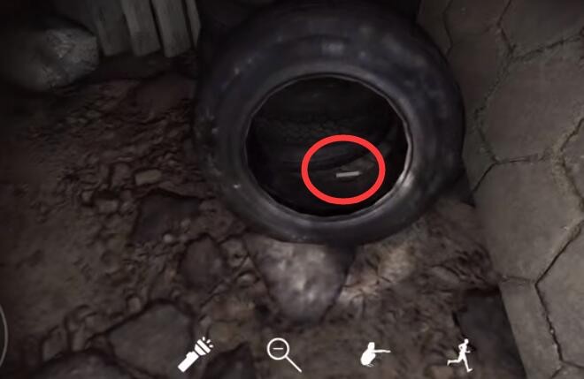 位置:移动人物来到帐篷的右边轮胎处,查看如图所示处即可。