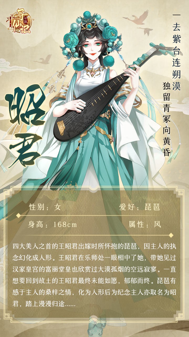 以上就是小编整理带来的《河图寻仙记》昭君角色图鉴介绍,大家还喜欢吗?更多精彩内容,请点击关注手游网,小编将持续为您更新!