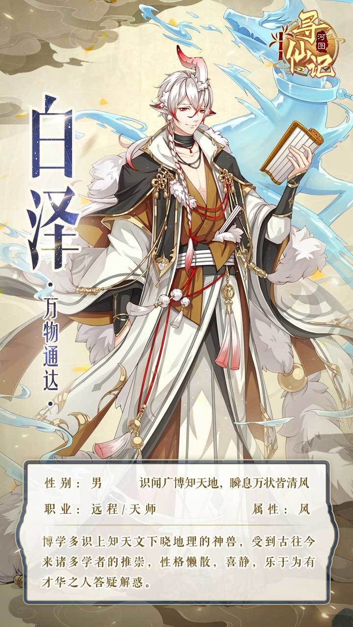 《河图寻仙记》是一款刚推出的中国风古典仙侠手游,游戏中有着神,魔,人,仙,妖,鬼这六个种族,玩家可以自由选择自己的角色和种族,世界也被分为五行八荒,各种有趣的故事等待你来探索。游戏中白泽怎么样呢?下面小编就给大家带来了《河图寻仙记》白泽人物图鉴介绍,一起看看吧!