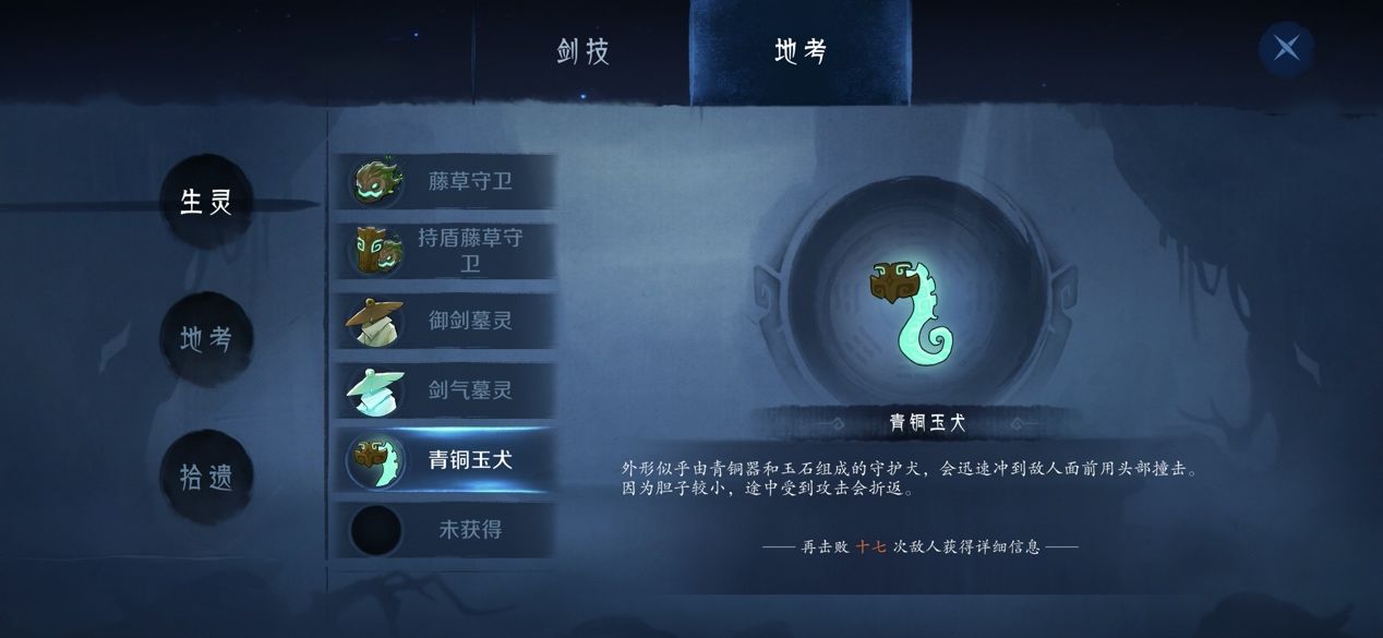 值得一提的是御剑墓灵和剑气墓灵的区别,普通的御剑墓灵可以通过场景里本就有的实体剑(通常扎在地上或是周围石壁上,每回合有概率刷新)来击杀,而剑气墓灵并不能被实体剑所伤,需要用剑气击杀(下面武器部分会说明实体剑和剑气的区别)。
