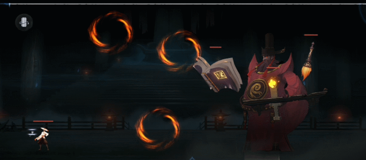 一阶段:判官抖动他的木剑召唤三个鬼火并在下回合逐一向我们发射,或者召唤一个小怪,无论是否被消灭都会继续召唤。
