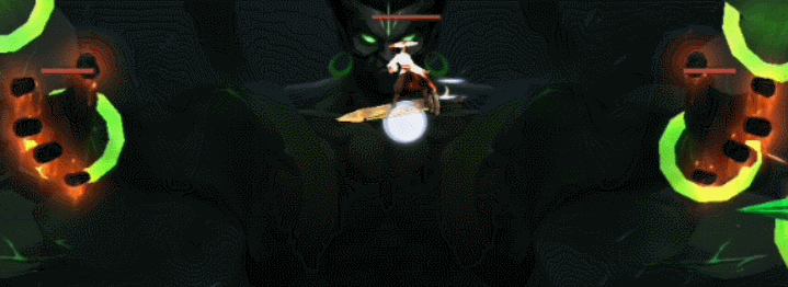 l 如果角色位置处于双手外侧则会召唤剑气炮代替双手合并攻击(阶段提升增加召唤频率与剑气炮生成的密度)